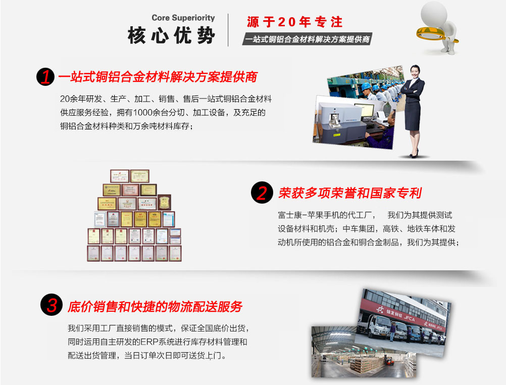 深圳市錦發(fā)銅鋁有限公司成立于1998年,注冊(cè)資金1億元人民幣,是一家國家高新技術(shù)企業(yè),榮獲廣東省著名商標(biāo)稱號(hào)。總部及生產(chǎn)基地位于深圳寶安松崗,占地面積3萬多平方。公司成立以來,一直專注于鋁材、銅材等合金材料的研發(fā)、生產(chǎn)加工及銷售。倉儲(chǔ)上萬噸銅鋁合金材料,迅速響應(yīng)客戶需求。